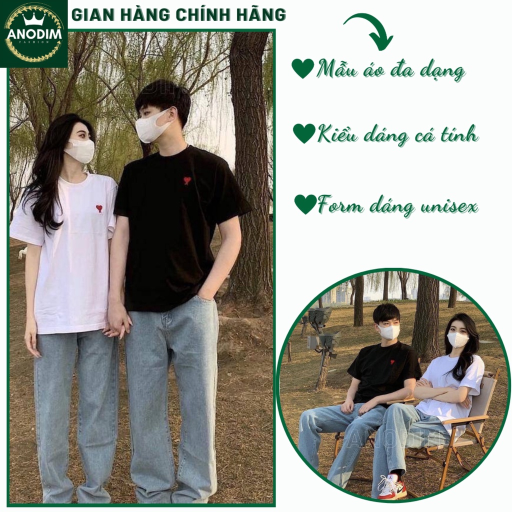 Áo đôi, áo thun cặp đồ đôi in hình trái tim chữ A nhỏ trước ngực