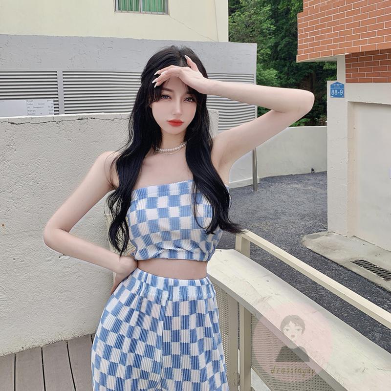 Áo Ống Không Tay Và Quần Dài Ống Rộng Lưng Cao Thời Trang Mùa Hè Cho Nữ