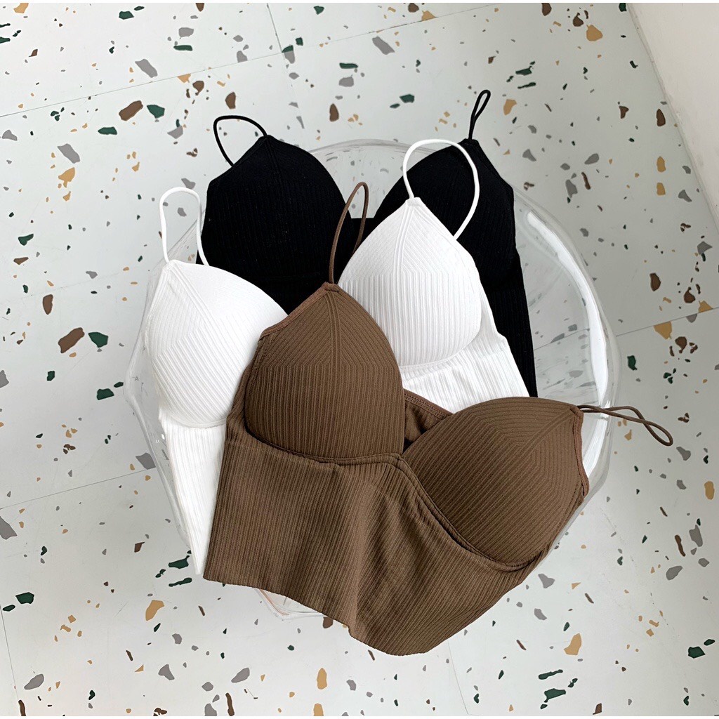 Áo bra nữ cotton tăm croptop 2 dây tháo rời và điều chỉnh được hàng chất mịn đẹp có mút ngực M199