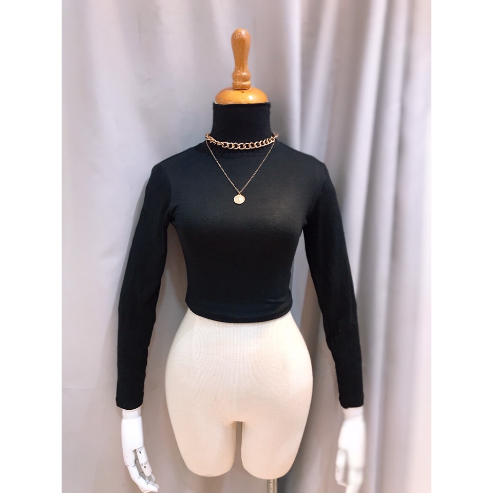 Áo Cổ Lọ Croptop Tay Dài Bigsize Nữ Chất Thun Cotton Trơn Co Giãn 4 Chiều Dưới 80Kg "CROP CL"