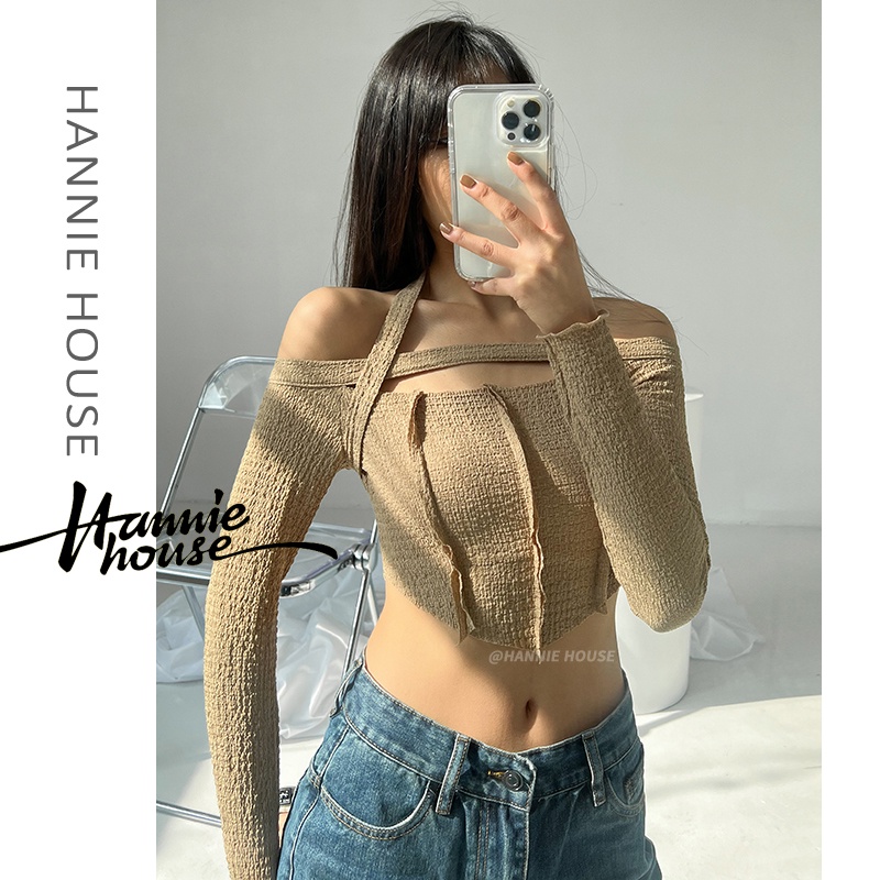Áo croptop nữ tay dài TOPTIFY cổ thuyền kiểu cột dây yếm khoét ngực Danisa Top AC66