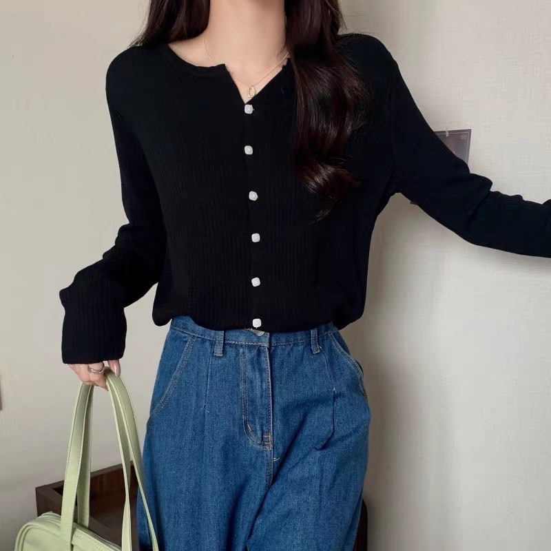Áo cadigan cúc vuônh sợi dệt chất đẹp, áo len croptop mềm dài tay nhiều màu hàn quốc dành cho nữ