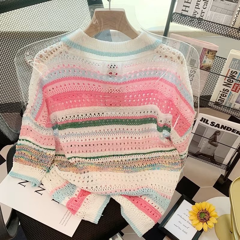 Áo cardigan ZHELIHANGFEI dệt kim mỏng tay ngắn phong cách retro mùa hè 2022