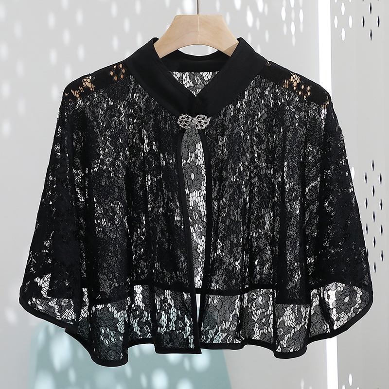 Áo Choàng Ren Dáng Rộng Phối Nút Màu Bạc Thời Trang Mùa Hè Cổ Điển Cho Nữ