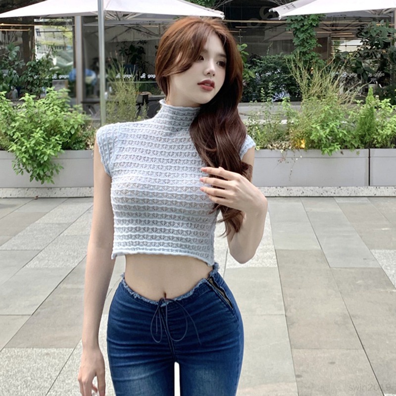 Áo Croptop Hai Dây Cổ Lọ Màu Sắc Đơn Giản Cho Nữ