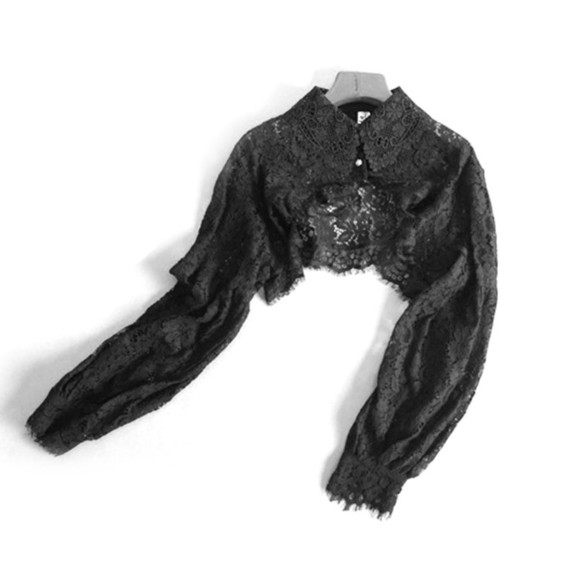 Áo Croptop Ren Hoa Tay Phồng Dài Giả Cổ Yếm Cho Nữ