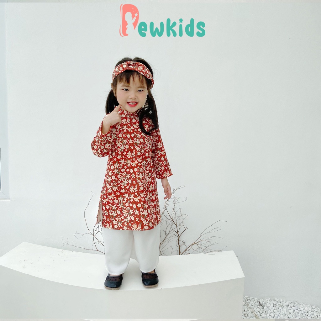 Áo dài cách tân họa tiết hoa nhí cho bé gái từ 1-2-3-4-5-6 tuổi, chất liệu nhung text Hàn cao cấp mix quần lụa