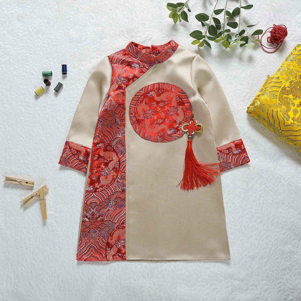 Áo dài cách tân bé trai long moc vang size từ 1đến 9 tuổi , áo dài tết cho trẻ em hàng xuất dư