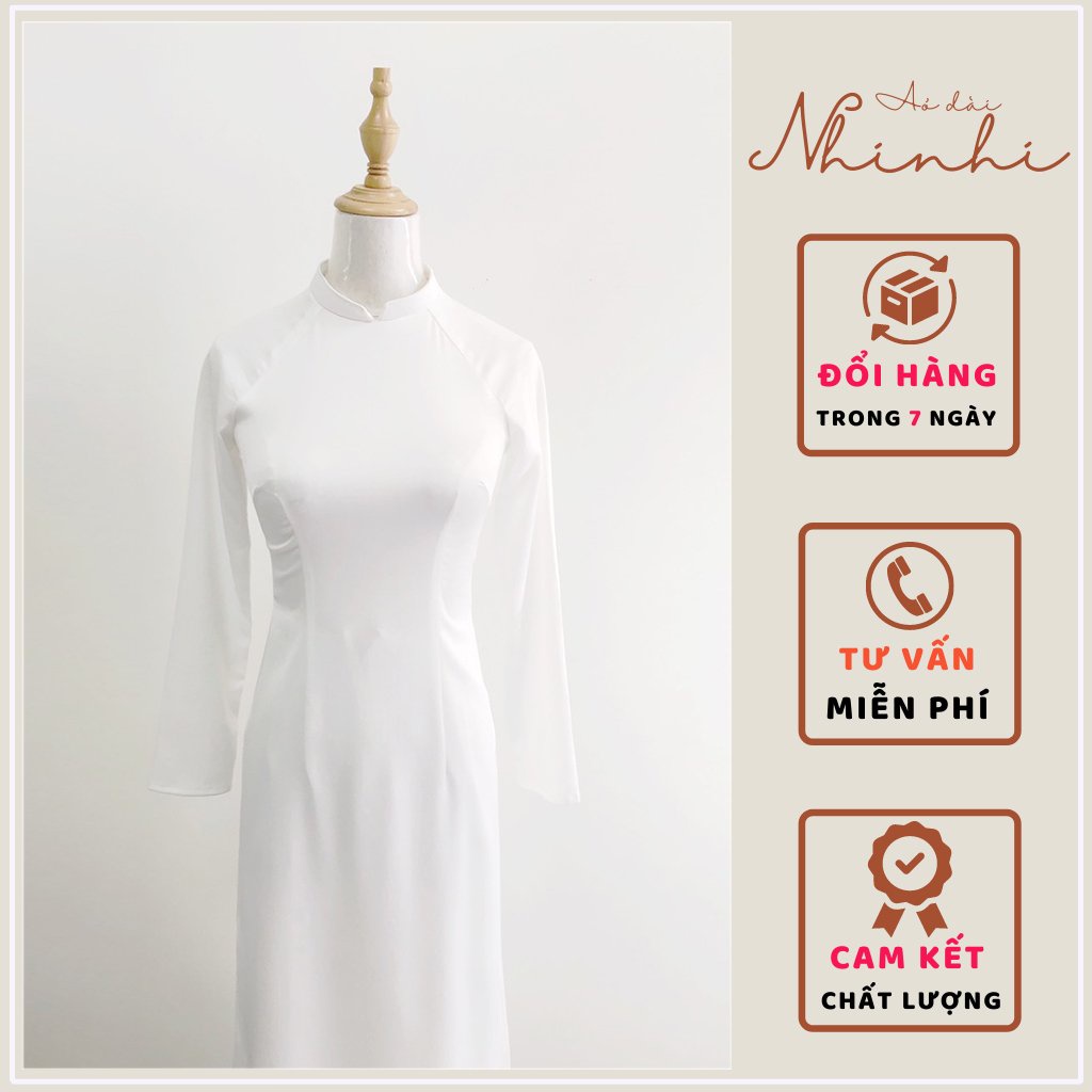 Áo dài trắng đi học truyền thống cổ vuông, áo dài nữ sinh NHINHI lụa Tây Thi