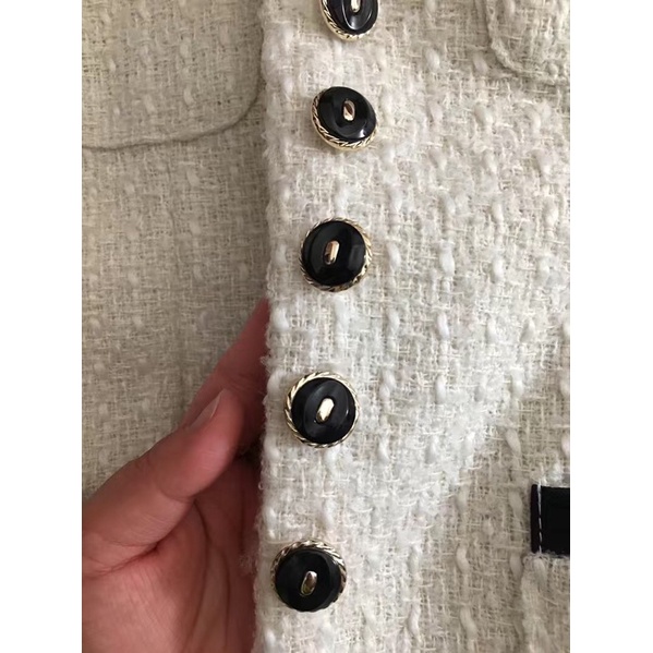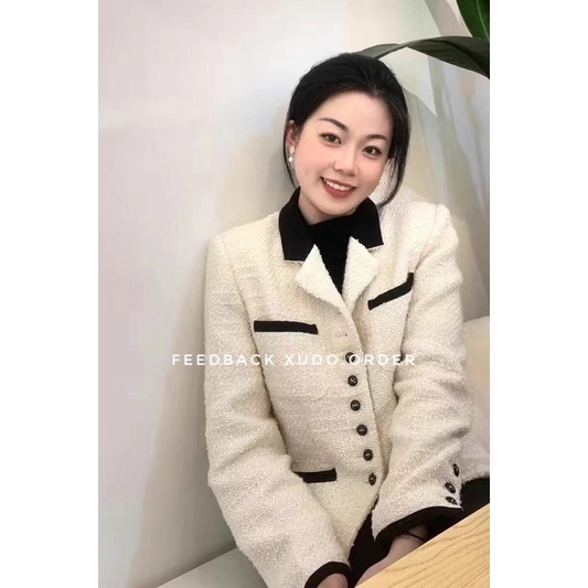 ÁO DẠ TWEED TRẮNG CỔ BẺ - ÁO KHOÁC NỮ THU ĐÔNG