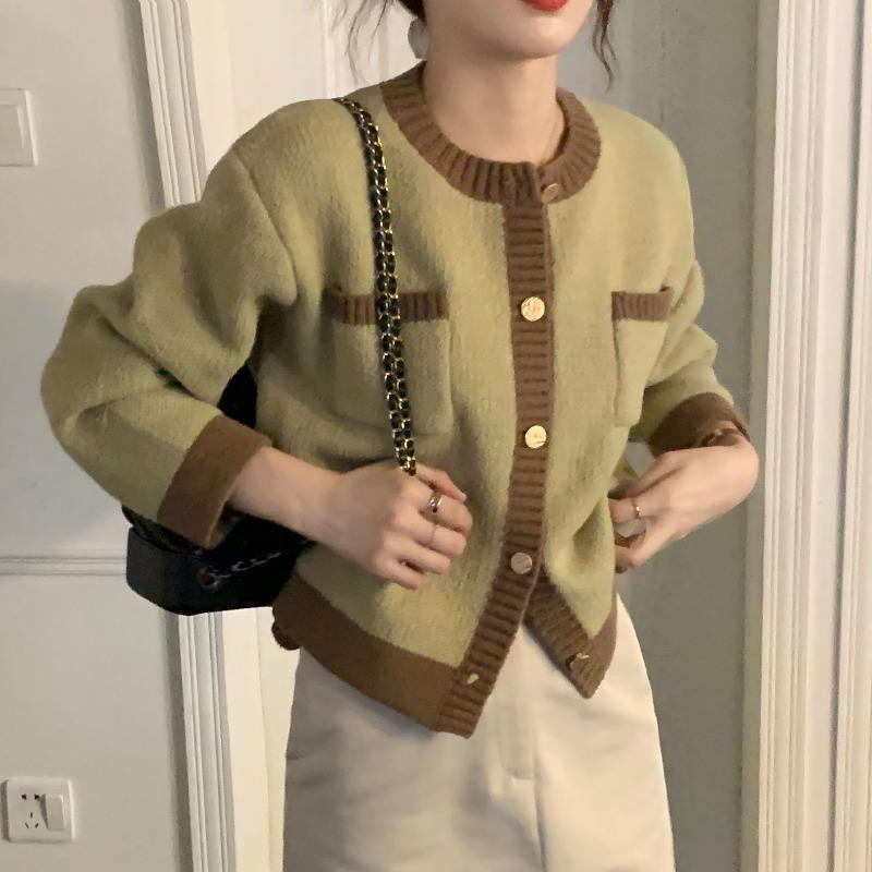 Áo Khoác cardigan Dệt Kim Tay Dài Cổ Đứng Có Khóa Kéo Phong Cách Phương Tây Cho Nữ