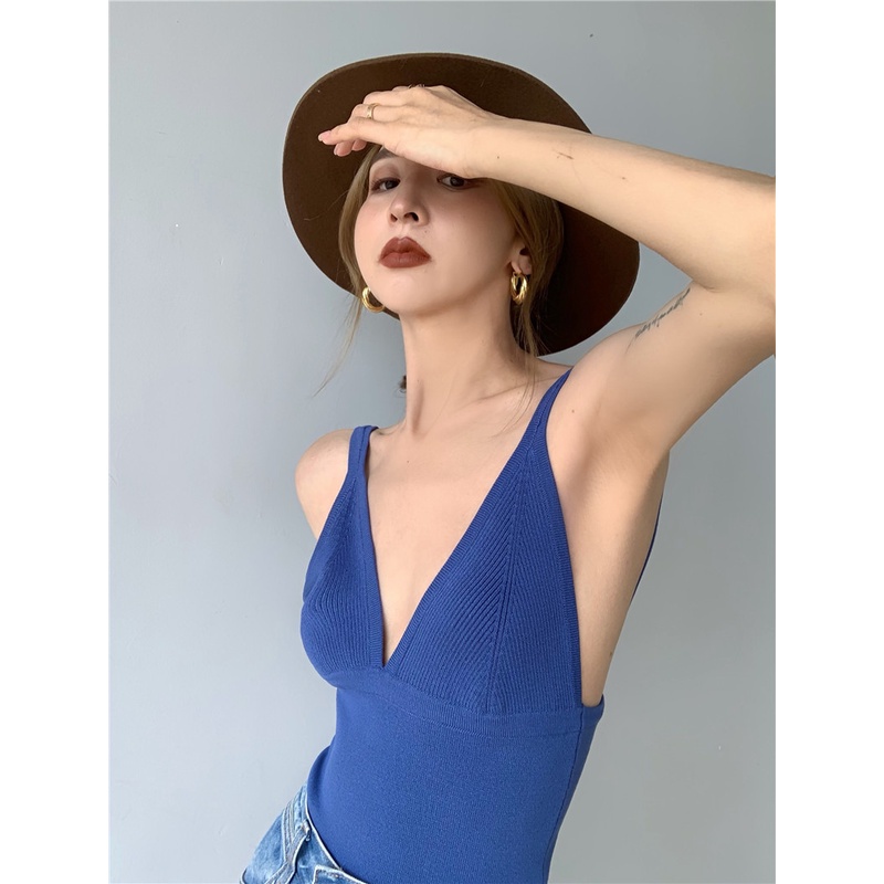 Áo Dệt Kim Không Tay Cổ Chữ V Khoét Sâu Gợi Cảm Cho Nữ