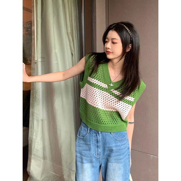 Áo dệt kim sát nách cổ chữ V form rộng phong cách vintage Hàn Quốc trẻ trung cho nam