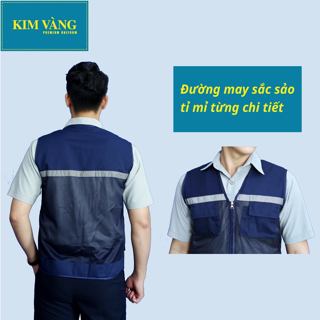 Áo ghile kĩ sư, đồng phục bảo hộ lao động chất liệu kaki TC phối lưới phản quang 3M cao cấp- Màu xanh đen