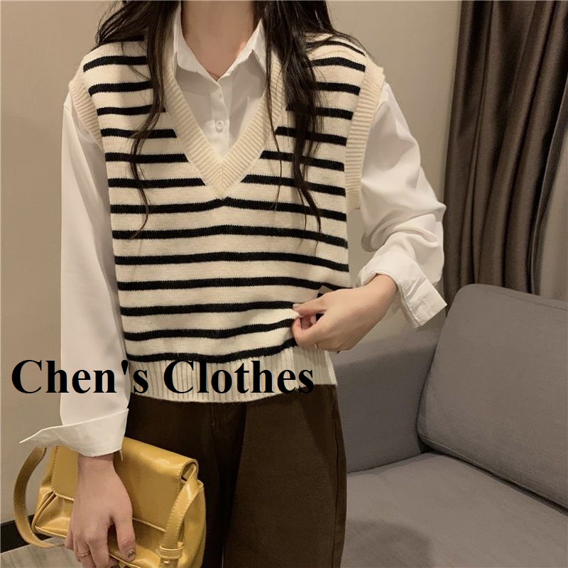 Áo len áo gile kẻ sóng freesize cổ V cài 1 khuy dáng rộng hoạ tiết kẻ dành cho nữ - shopbelinh