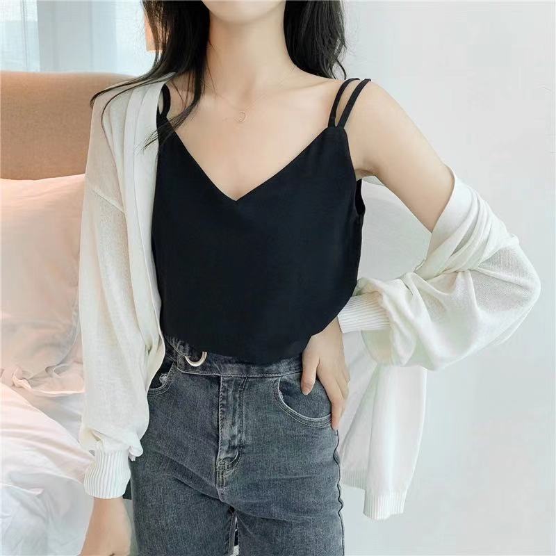 Áo hai dây cổ chữ V dáng rộng thiết kế mới thời trang mùa hè dành cho nữ 2021