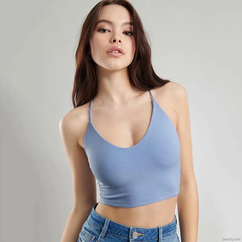Áo Hai Dây Dệt Kim Cổ Chữ V Màu Trơn Thiết Kế Quyến Rũ Cho Nữ