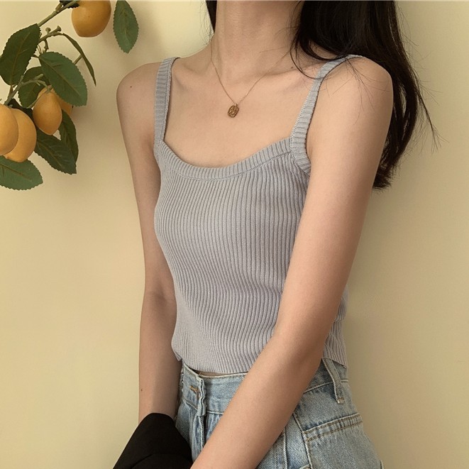 Áo hai dây hở vai nữ tay 2021, áo kiểu nữ đẹp màu xanh, xám, trắng, đen, cổ tròn