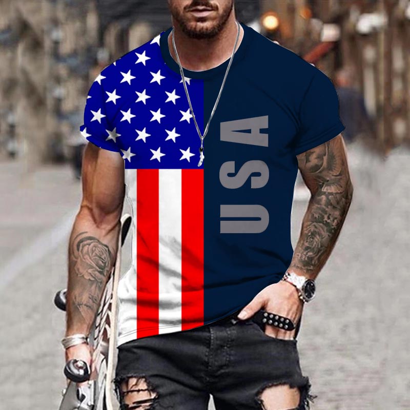 Áo HUQISHA tay ngắn cổ tròn in hình lá cờ nước Mỹ thời trang cho nữ
