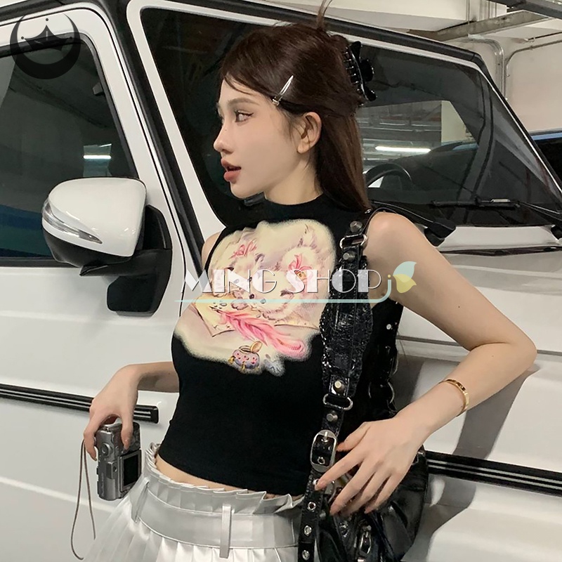 Áo Không Tay Cổ Lọ In Họa Tiết Mèo Dễ Thương Thời Trang Mùa Hè Cho Nữ