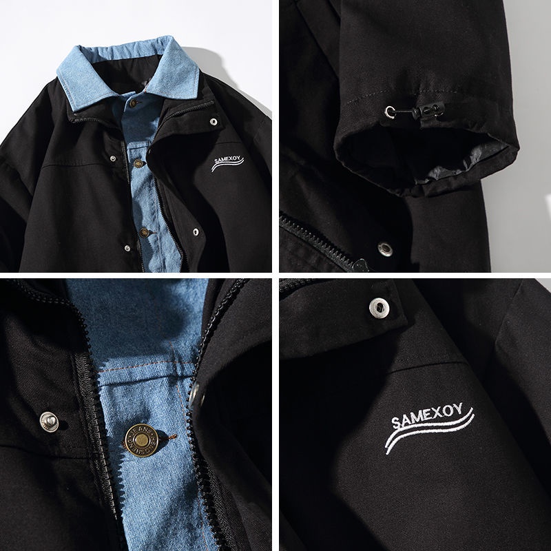 Áo khoác bomber nam nỉ áo khoác dù gió Áo Khoác Giả Hai Lớp Dáng Rộng Cỡ Lớn Phong Cách Nhật Bản Thời Trang Xuân Thu Cho Nam