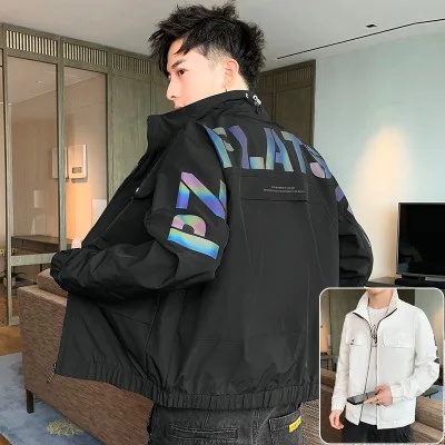 Áo khoác cổ đứng dáng rộng thêu họa tiết thời trang mùa thu Hàn Quốc 2021 mới cá tính cho nam