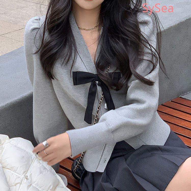 Áo Khoác Cardigan Dệt Kim Cổ Chữ V Thắt Nơ Xinh Xắn Thời Trang Cho Nữ