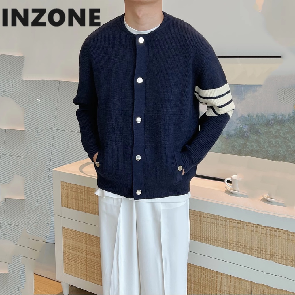 Áo Khoác cardigan Dệt Kim Kẻ Sọc Màu Sắc Dày Dặn Dáng Rộng Phong Cách Hàn Quốc Cho Nam Giới
