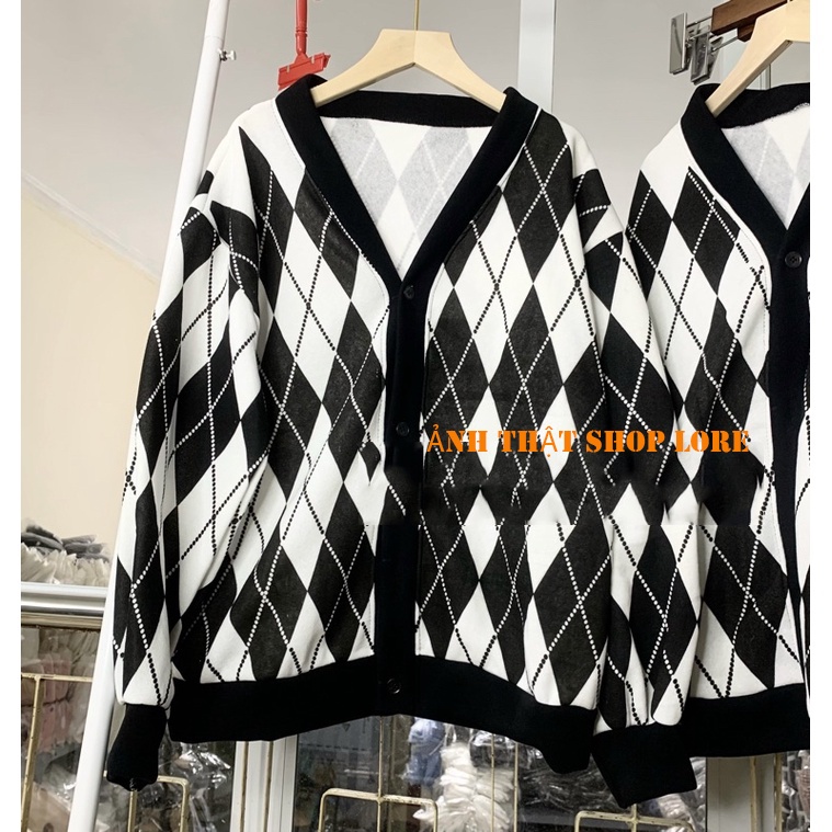 Áo Khoác Cardigan Len Nữ Quảng Châu Dáng Dài Họa Tiết Kẻ Hình Thoi Kim Cương Karo Vintage Hàn Quốc