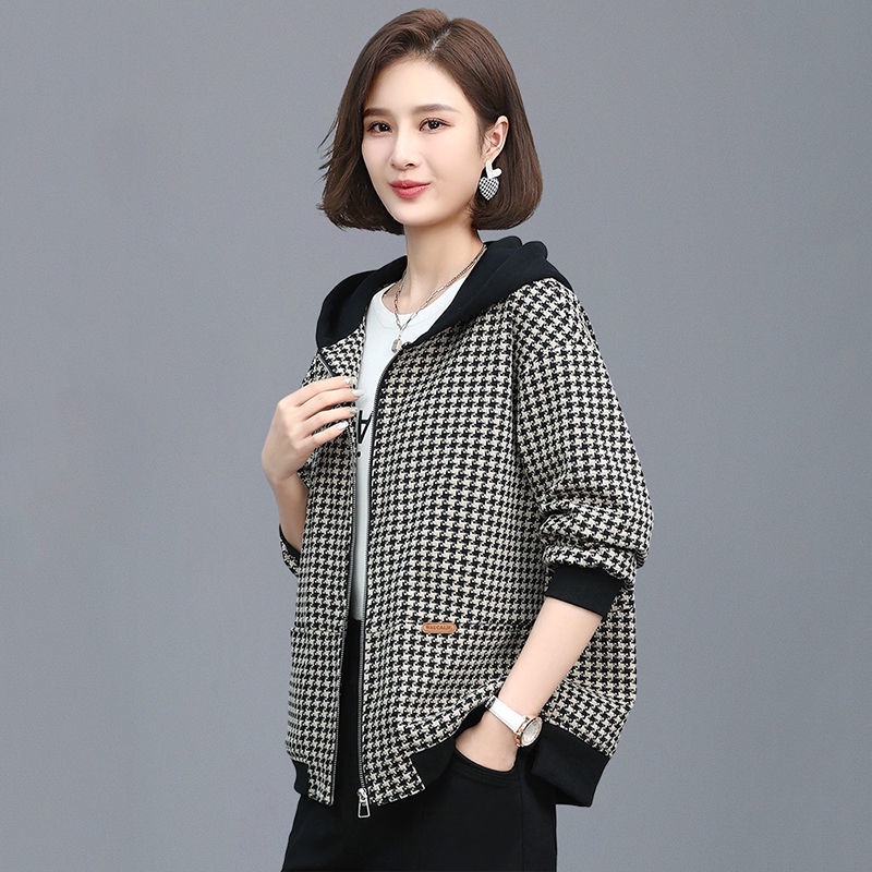 Áo Khoác Dáng Rộng Ngắn Họa Tiết Răng Tròn Thời Trang Xuân Thu Cho Phụ Nữ Trung Niên