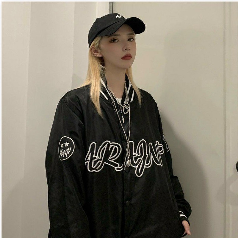 Áo Khoác Bomber Jacket Dù 2 Lớp LET HES Varsity Form Rộng Nam Nữ Unisex Phong Cách Hàn Quốc Ulzzang