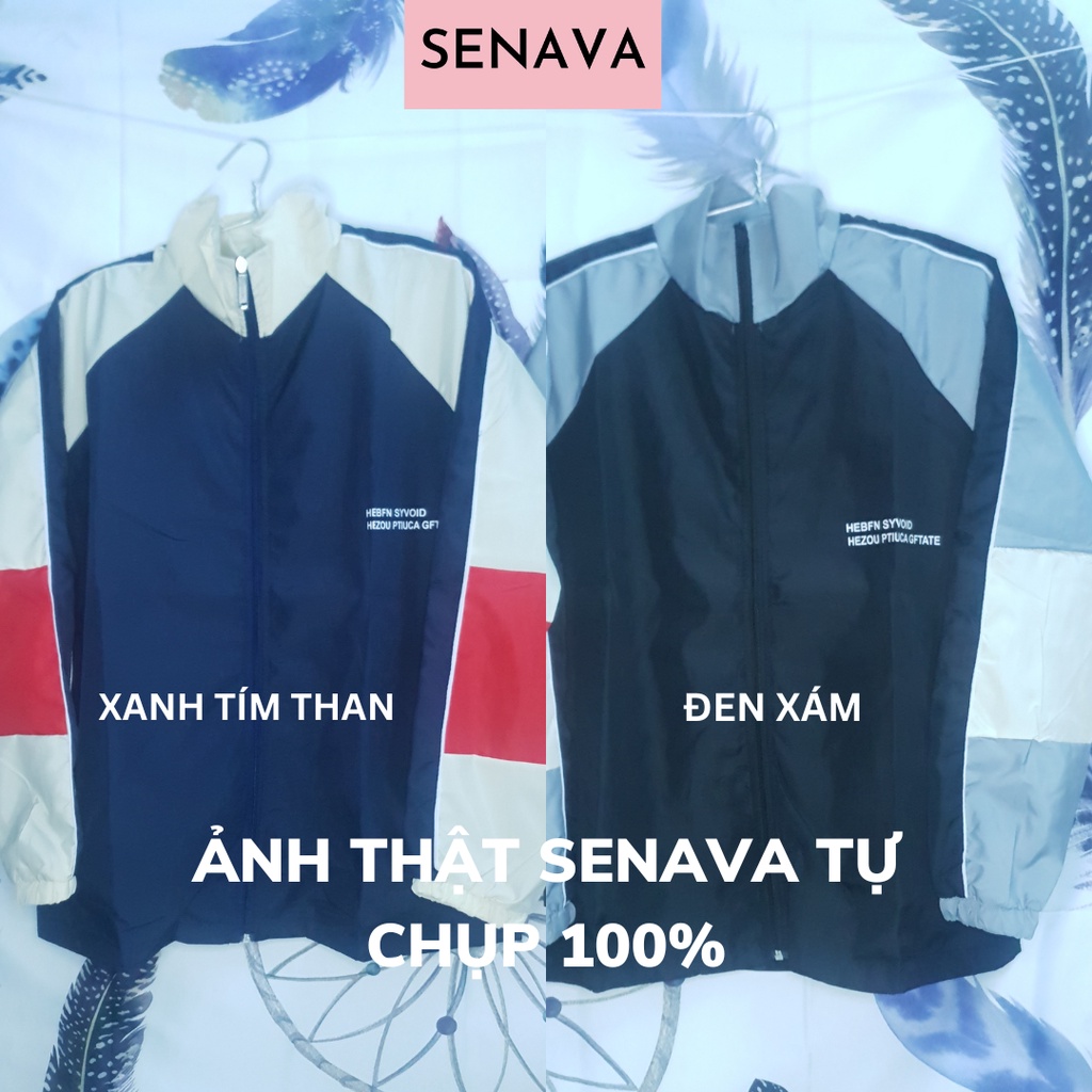 Áo khoác dù nữ nam Jacket phối màu logo in, Áo khoác gió bomber 2 lớp full zip mặc đi học SENAVA AK69