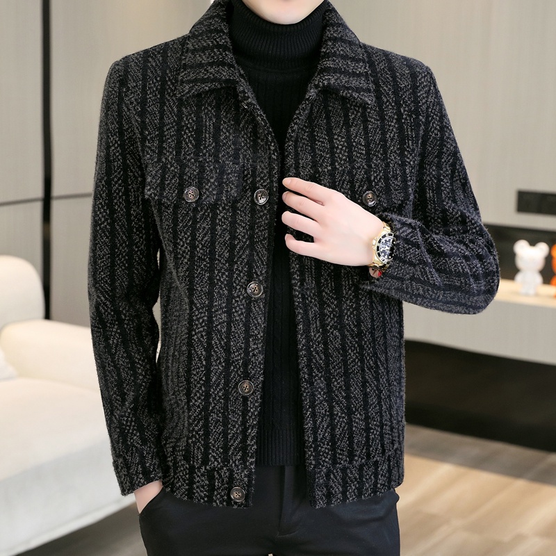Áo khoác dạ nam hàn quốc dáng ngắn kẻ sọc cao cấp phong cách lịch lãm