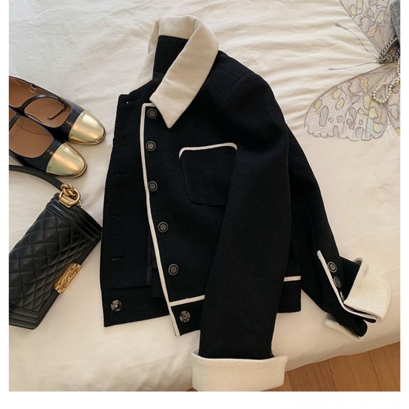 Áo khoác dạ tweed bẻ cổ, quảng châu 2 lớp