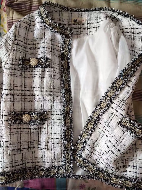 Áo Khoác Dạ Tweed Phối Cổ Trắng Đen Cúc Đồng Cổ Sơ Mi 2 Lớp Size S M -Halinh Shop Chuyên Sỉ