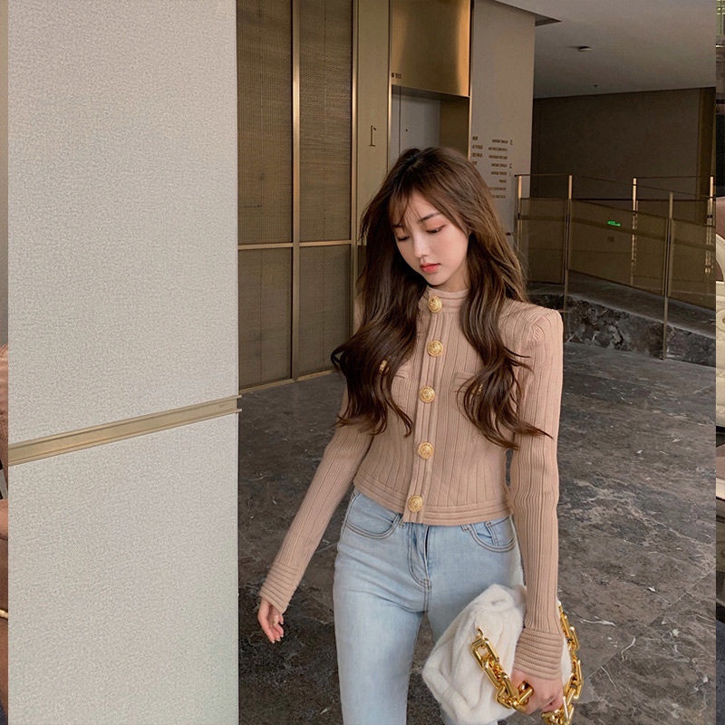 Áo khoác dệt kim dáng ngắn ôm vừa vặn tay dài thời trang xuân thu cho nữ