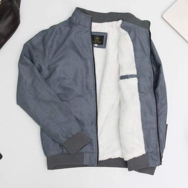 Áo khoác nam bomber da lộn khoác mùa đông lót lông hai lớp dày dặn cổ đứng GUSSET