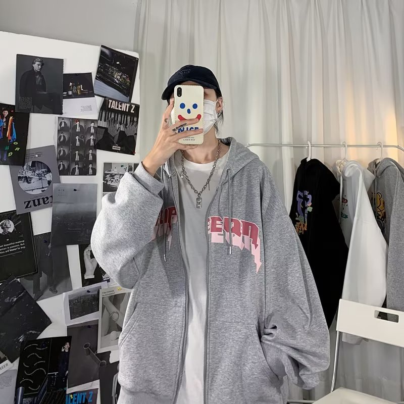 Áo Khoác Hoodie Thể Thao Dáng Rộng In Chữ Có Khóa Kéo Phong Cách Thời Trang Hàn Quốc Cho Nam Giới Có Size M-5XL