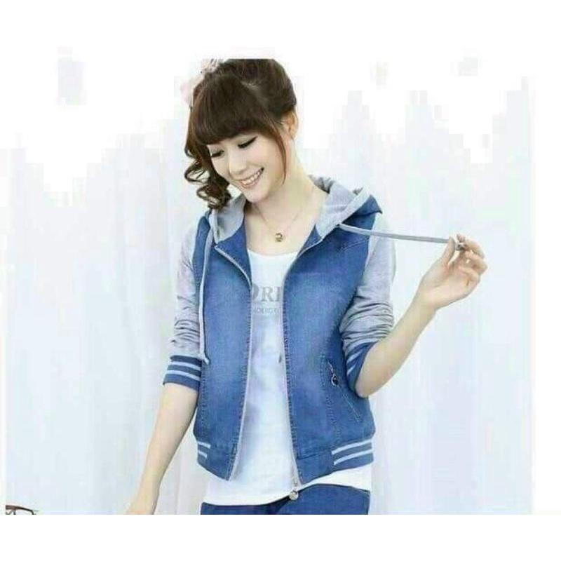 ÁO KHOÁC JEAN CÓ NÓN 260 Chất liệu: jean mềm phối thun co giãn tốt Kiểu dáng: áo suông bo thun , tay thun dài, có nón dây rút, 2 túi có dây kéo Size: M L - Size M (ngực 92, d...