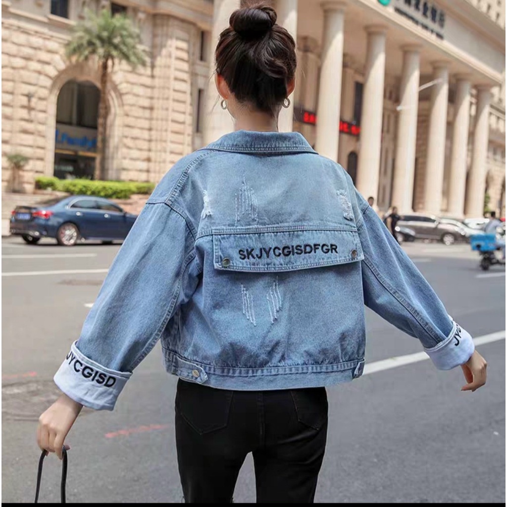 Áo khoác jean nữ lật tay form lững skjy - freesize dưới 58Kg