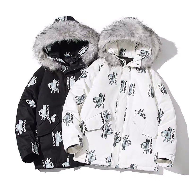 Áo khoác kaki dáng rộng mũ lông hoạ tiết bàn tay unisex trần bông cổ lông siêu ấm cực chất ❤