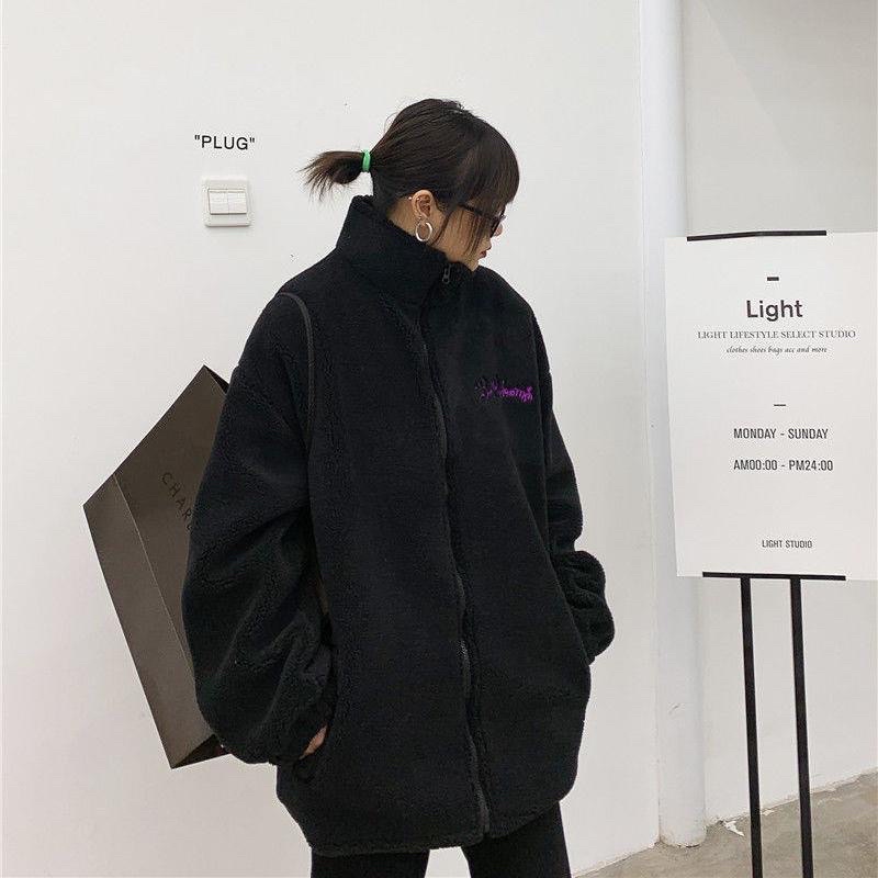 Áo khoác lông cừu thêu chữ uzzang hàn quốc 🐻