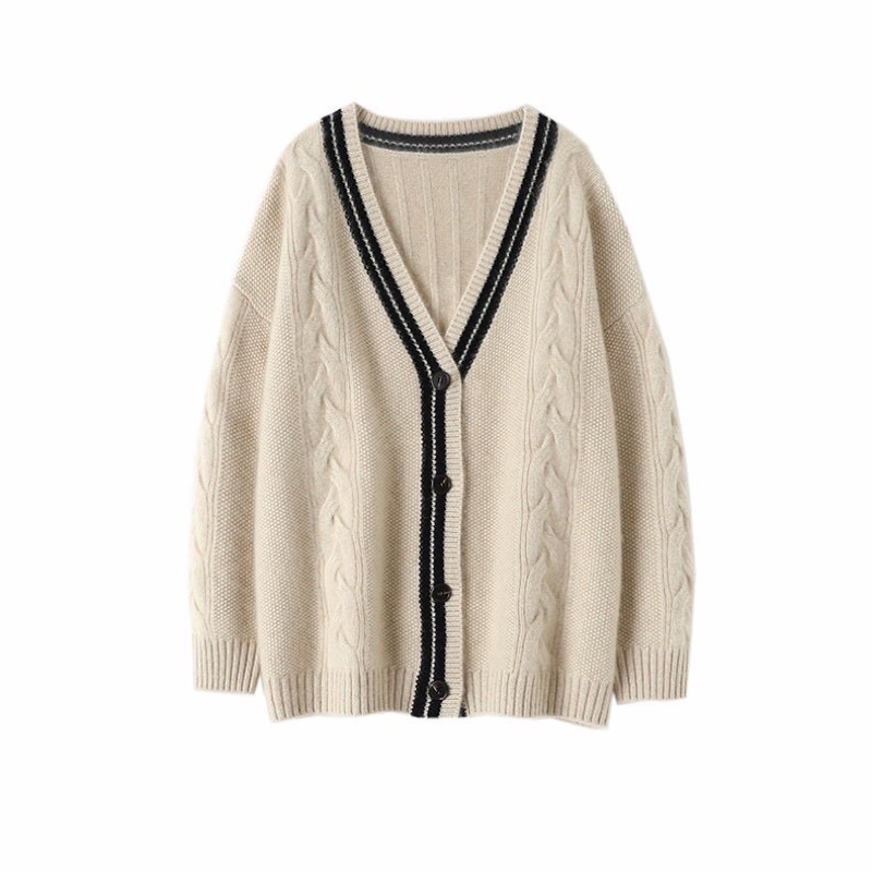 Cardigan Nữ Len Dệt Kim Loại 1 Vặn Thừng Áo Khoác Cadigan Nữ Mùa Đông Áo Len