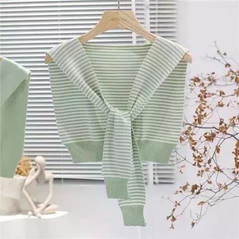 Áo Khoác Len Dệt Kim Sát Nách Kẻ Sọc Thắt Nơ Vai Bảo Vệ Cổ Thời Trang Xuân Hè