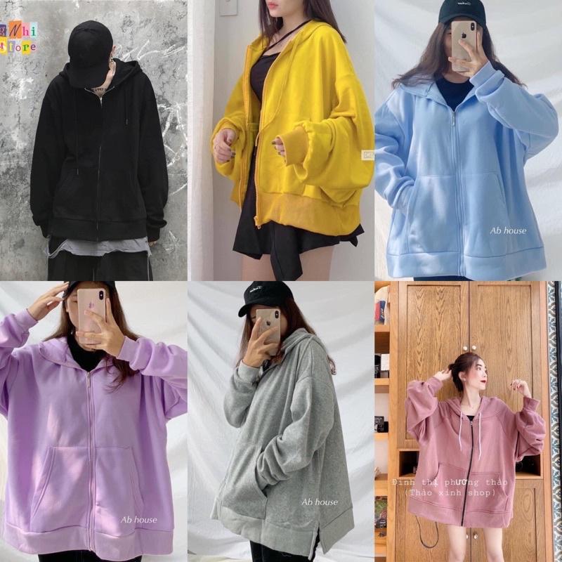 Áo khoác hoodie nỉ bông dây kéo AHER form rộng unisex nam nữ Zoozoo ulzzang