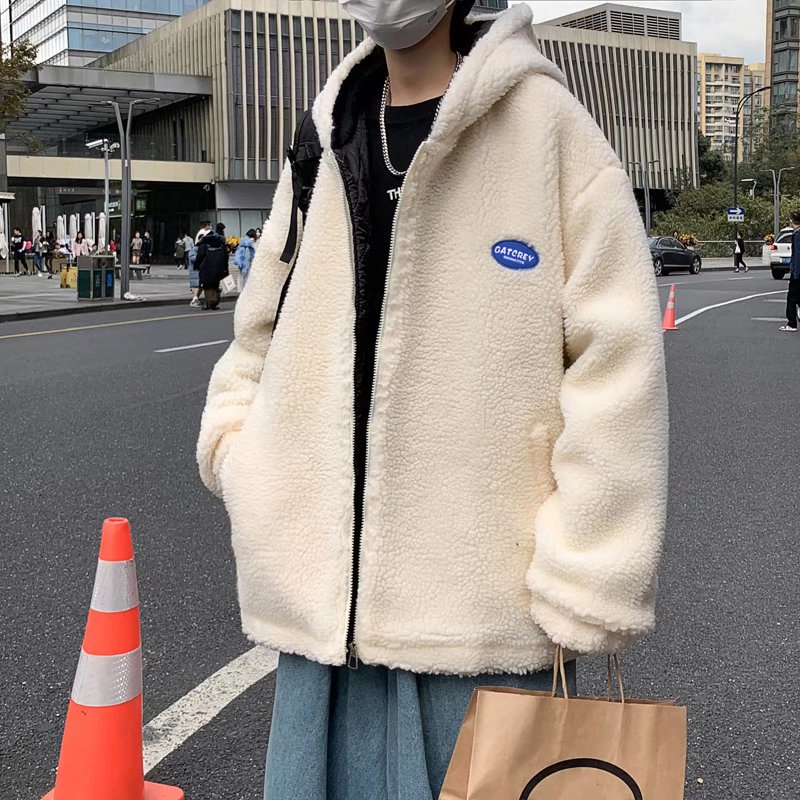 Áo khoác nam đệm lông cừu lót cotton dày dáng rộng phong cách Hàn Quốc sành điệu