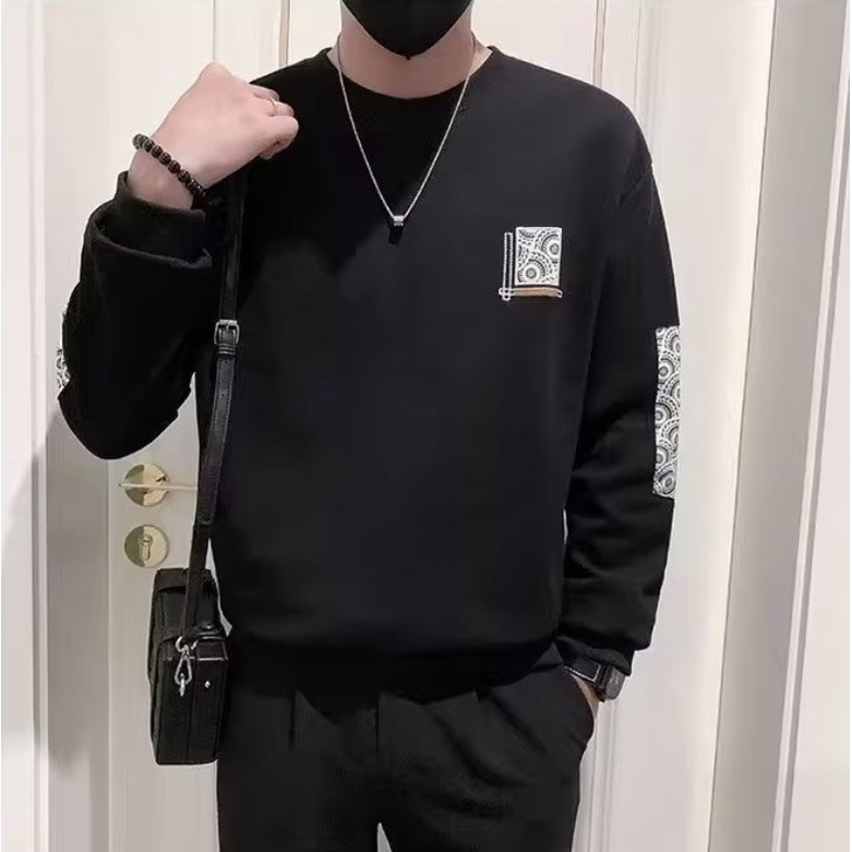 Áo khoác sweater cổ tròn dáng rộng bằng pu thời trang xuân thu cho nam mới phong cách hàn quốc năng dộng thời trang mùa dông