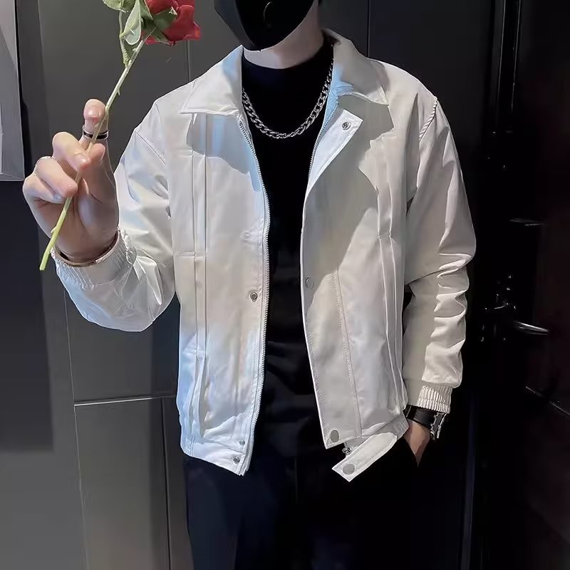 Áo khoác trắng nam mùa xuân thu phong cách mới đường phố mặc áo khoác ve áo phong cách anh yuppie đẹp trai nam giới giản dị hàng đầu