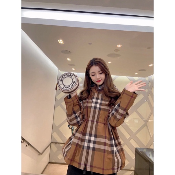 Áo khoác trench coat kẻ sọc cổ điển có dây rút ở eo thương hiệu Burberry 2022 cao cấp