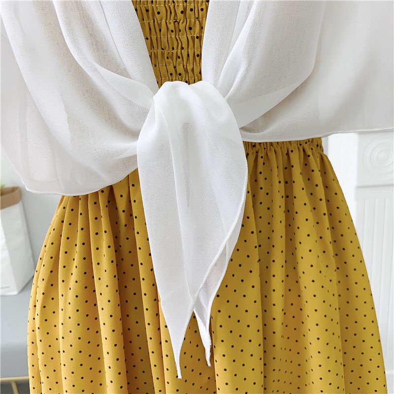 Áo Khoác Voan cardigan Mỏng Chống Nắng Kèm Đầm Hai Dây Thời Trang Mùa Hè Cho Nữ